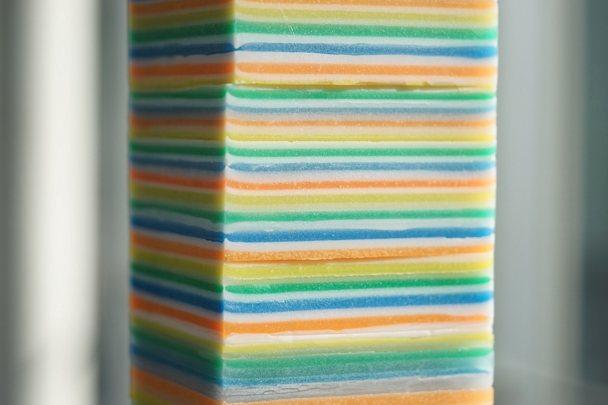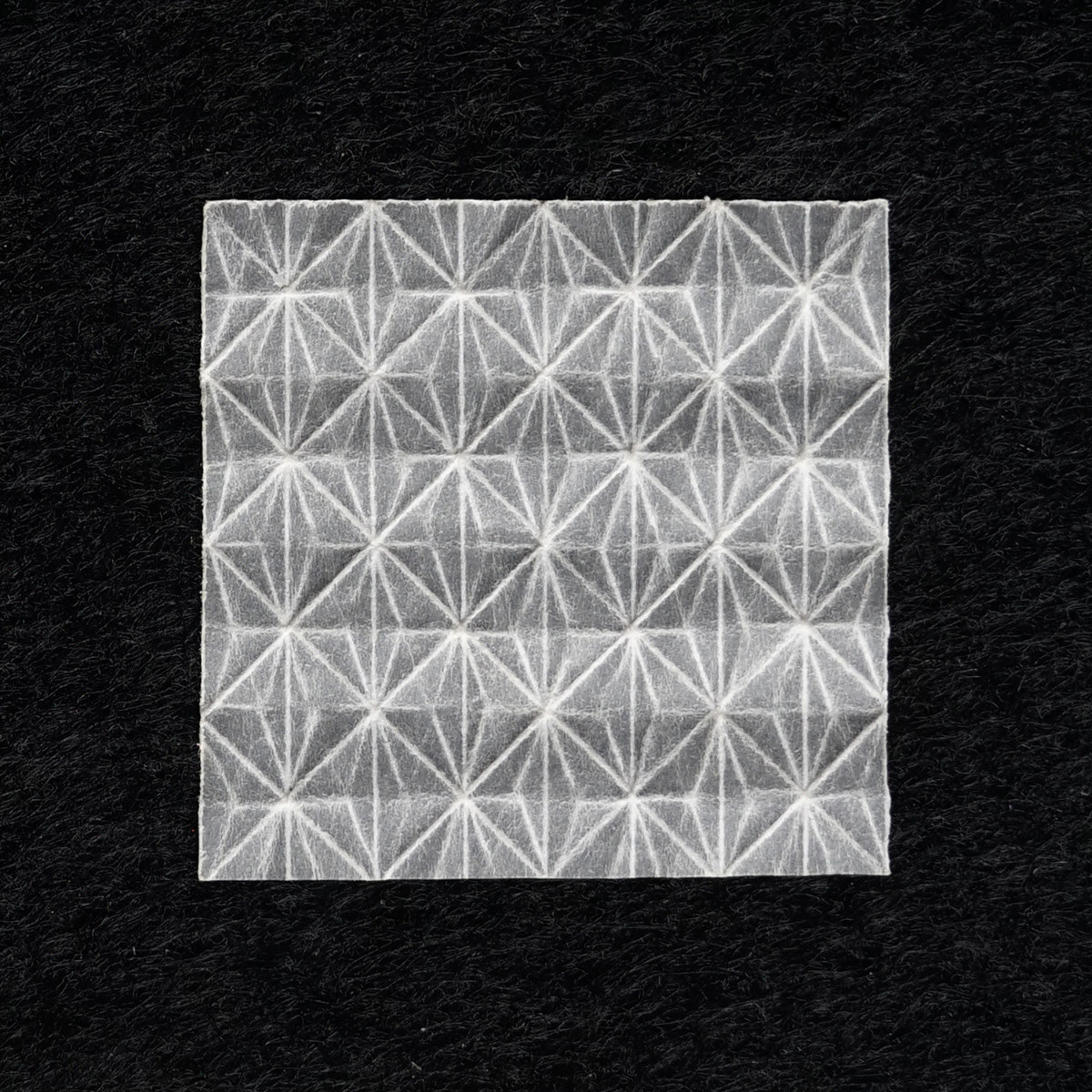 ハーフカット(紙にカッターで浅く傷をつけて折る技法)により得られる明快な稜線の美しさと、折るときの感触が好きで、折りの作業がたくさん必要になる形体を選んで制作した。