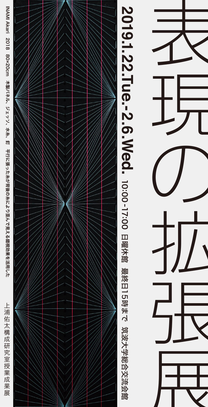 高さ3cm、幅・奥行き共に90cmの扁平な空間の中にどんな立体表現ができるのかを試行した。上下に鏡を貼ることで僅かな空間を広く見せ、中に透明な球体を配置することで映り込みが増大するように工夫した。環境デザインを専攻する学生のためか、建築模型を思わせる平たい空間の中で表現の可能性を探る姿勢が興味深い。