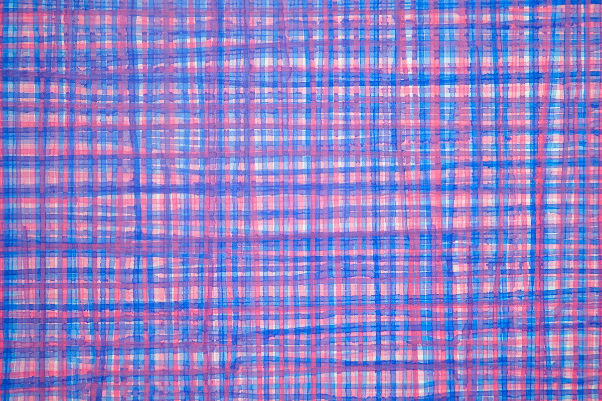 カラーのゴム紐を画面上に張った作品。