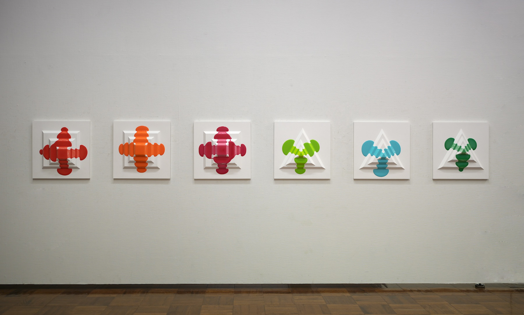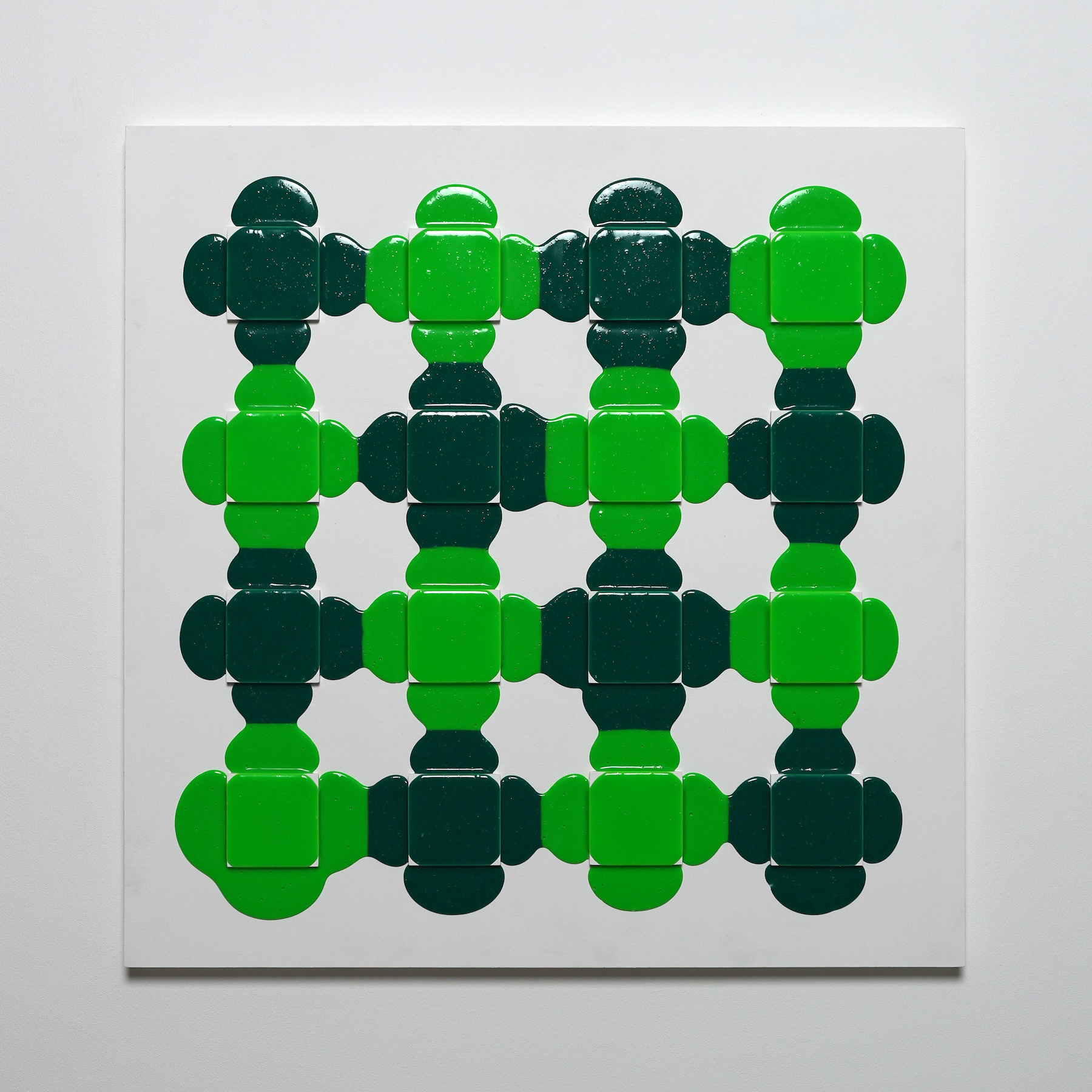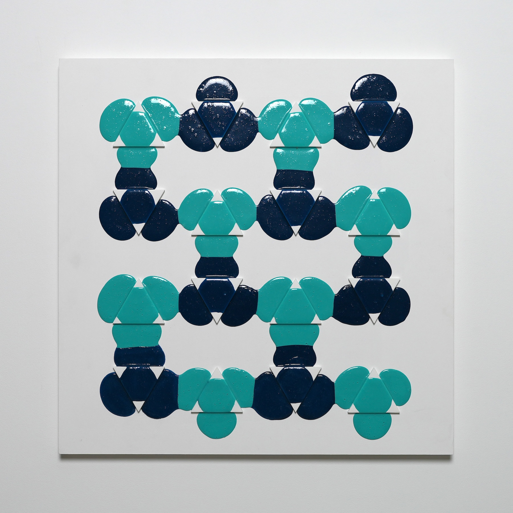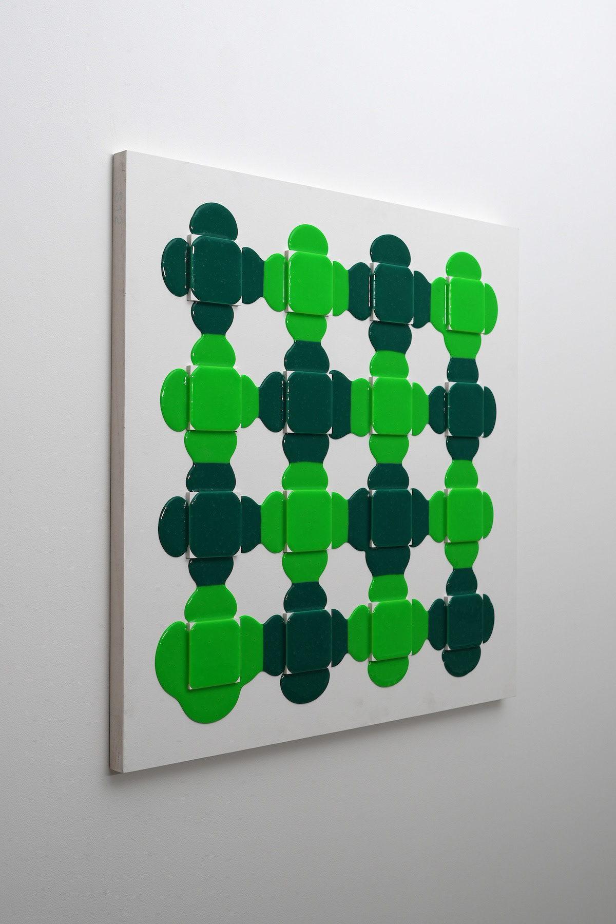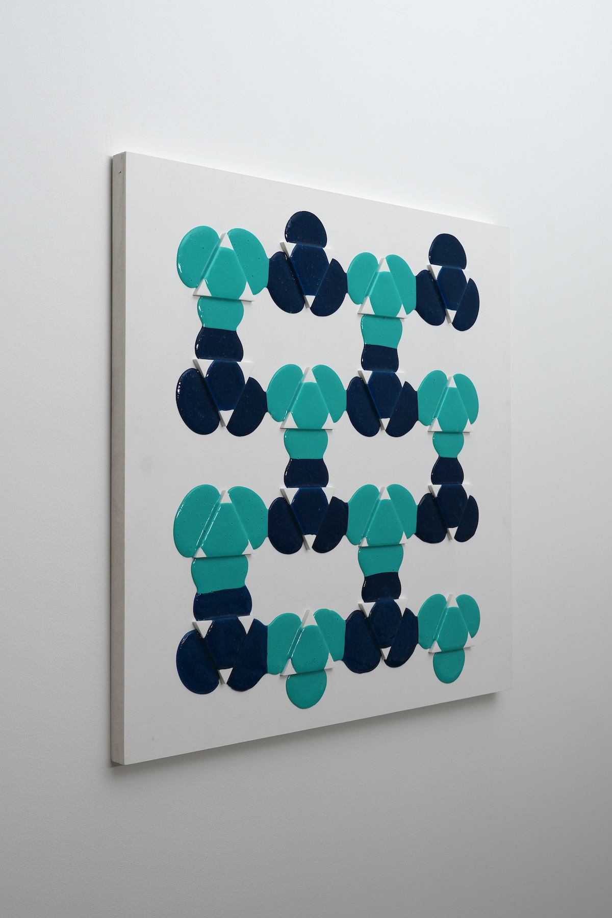 修了制作 「Surface tension」2024 ビニール系接着剤、アクリル絵の具、木材 6点組作品(各60.5×60.5×7.5cm)