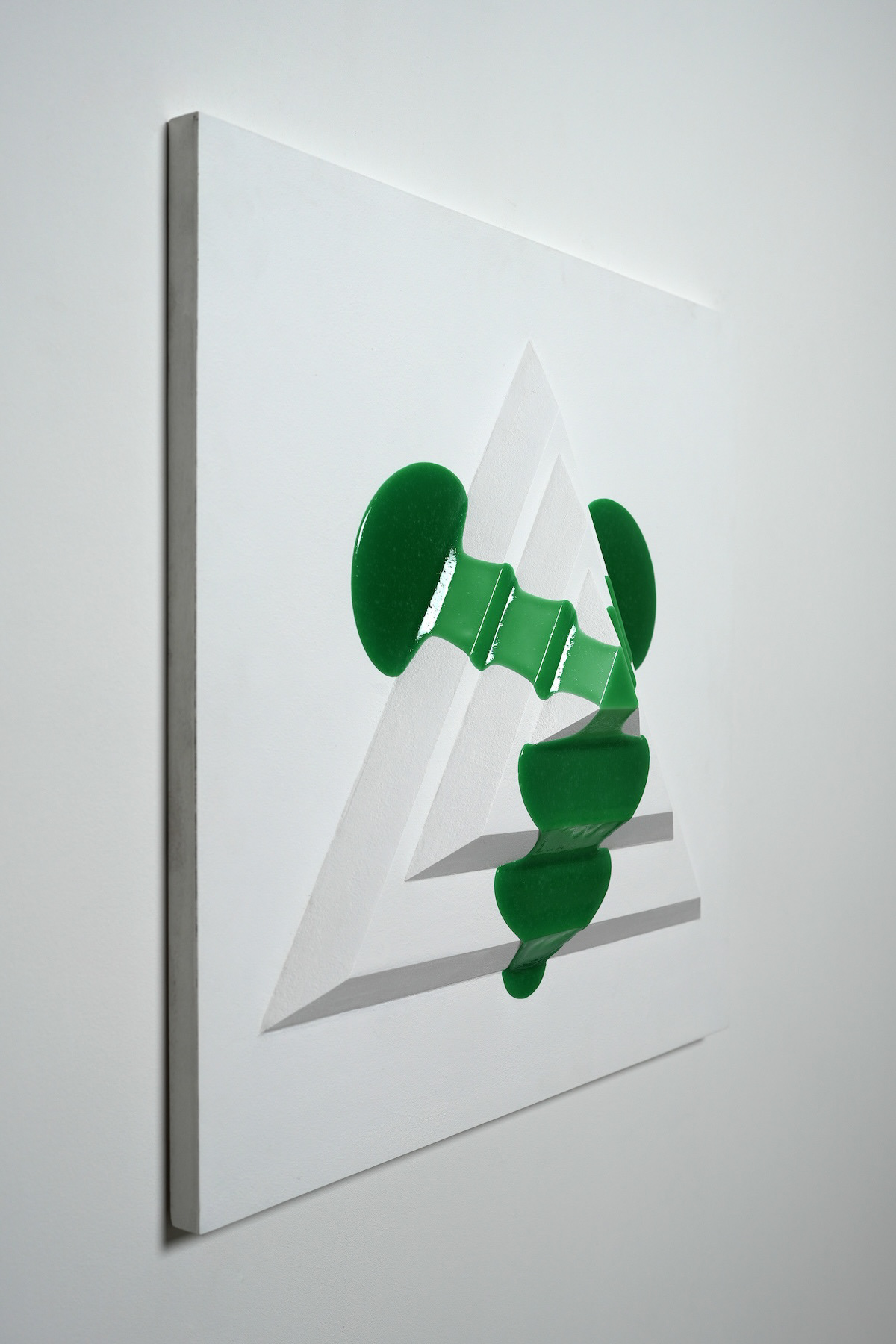 「Act of dripping」 ビニール系接着剤、アクリル絵の具、木材 S12号(60.6×60.6cm) 3点組作品