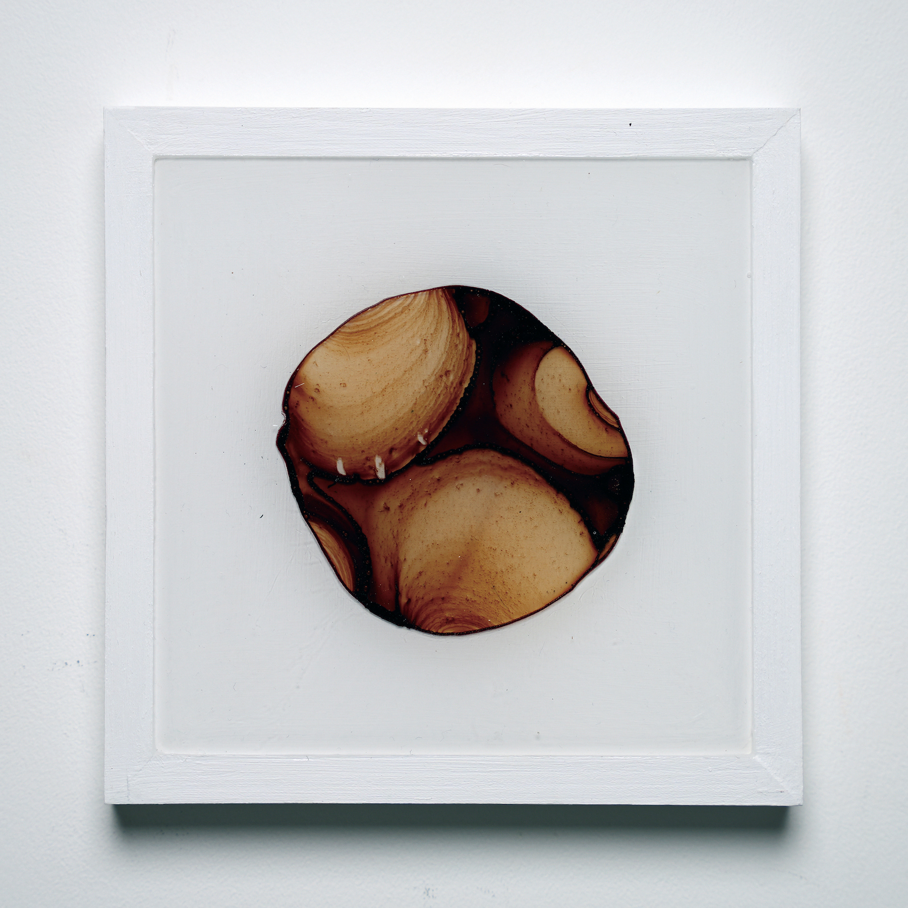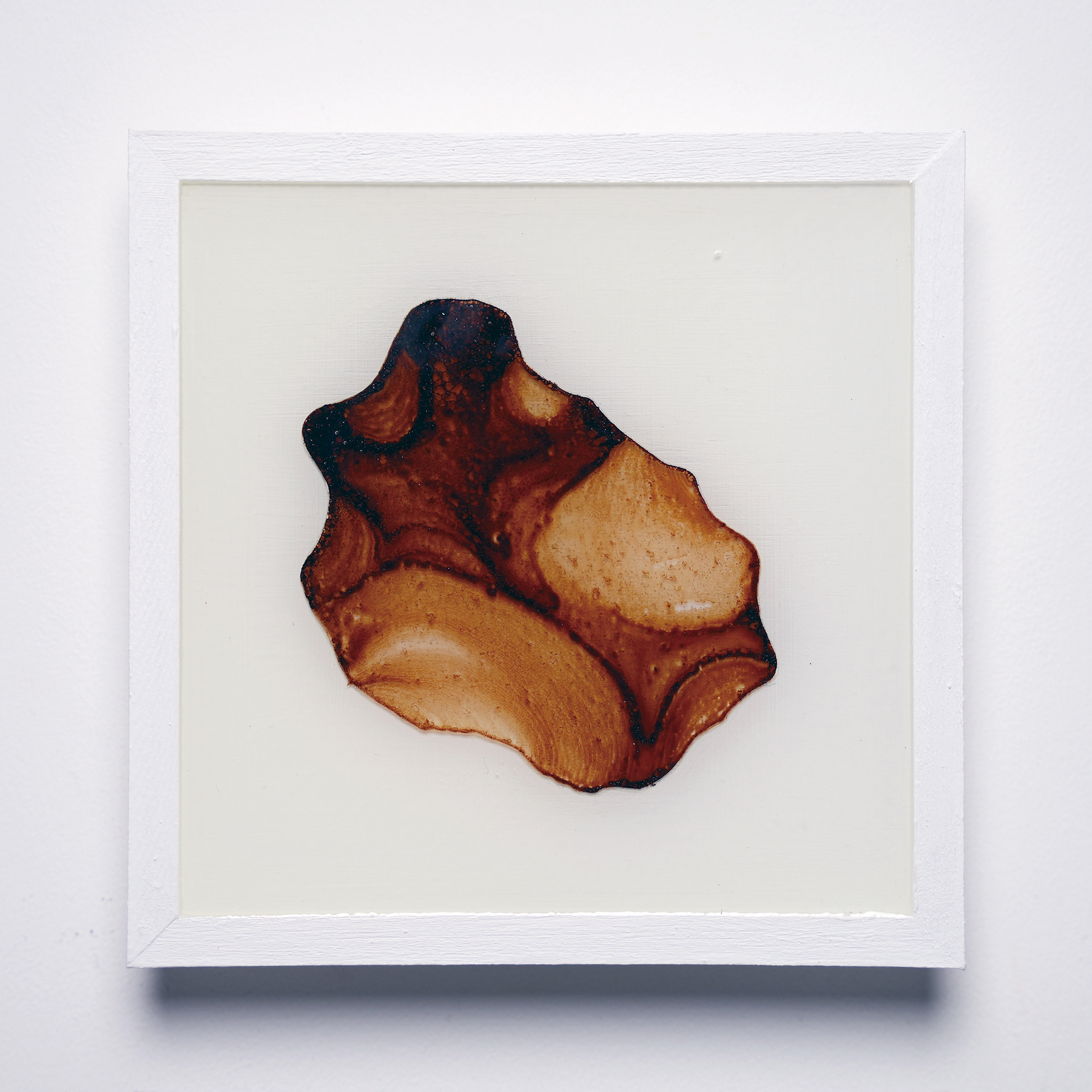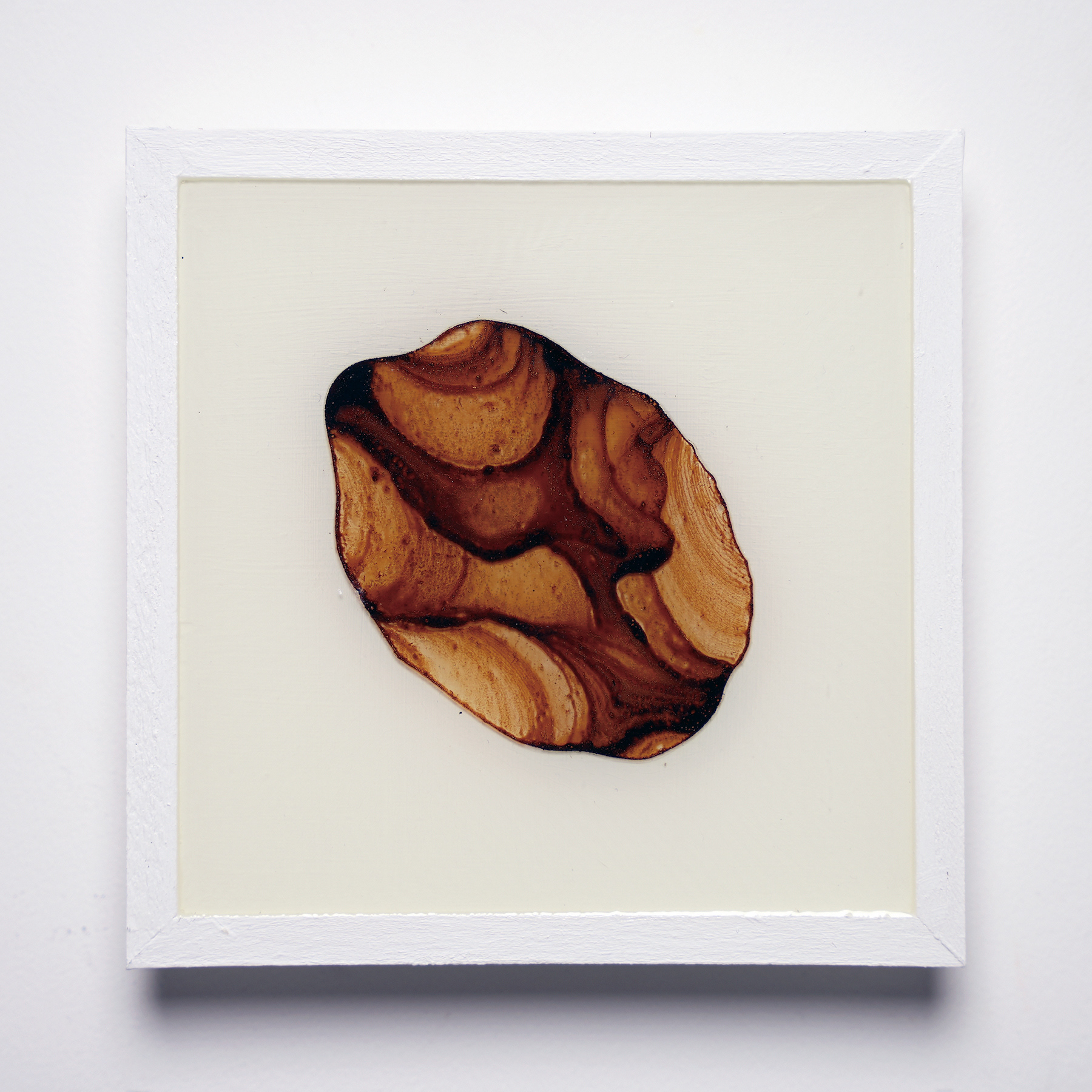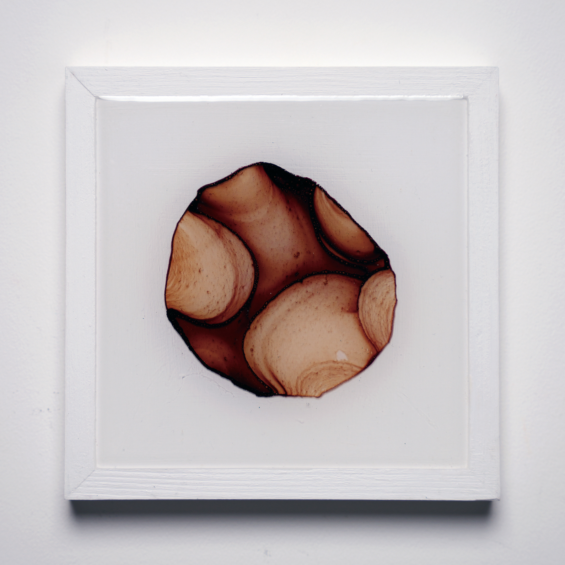 プラ板に紅茶を垂らして乾燥させ、オーブンで焼いたものをレジンで封入したシリーズ。収縮により密度が上がり、濃淡が強調される。紅茶の種類により色も変わる。