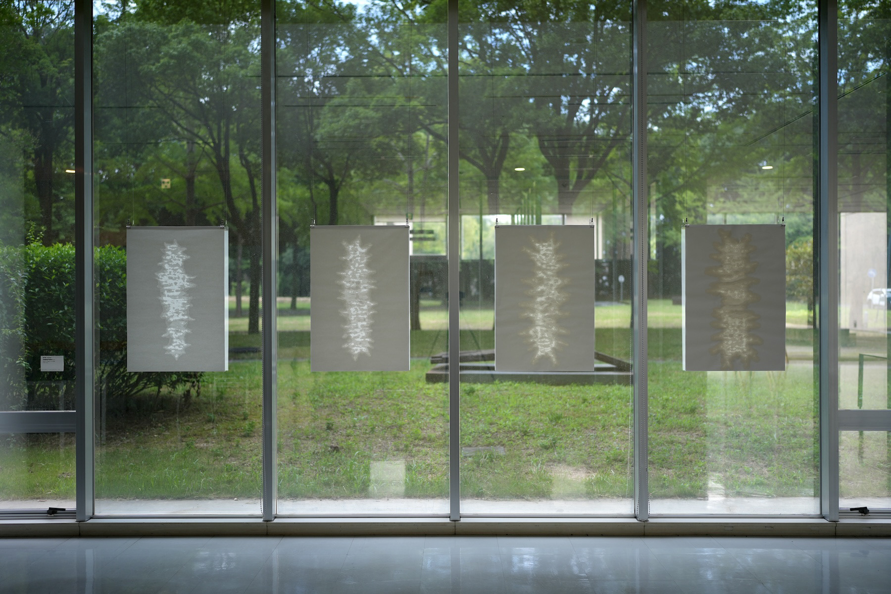 「Seeping Pattern」 竹紙ホワイト64g/㎡、エポキシ樹脂 各93.9×63.6cm、4点組作品