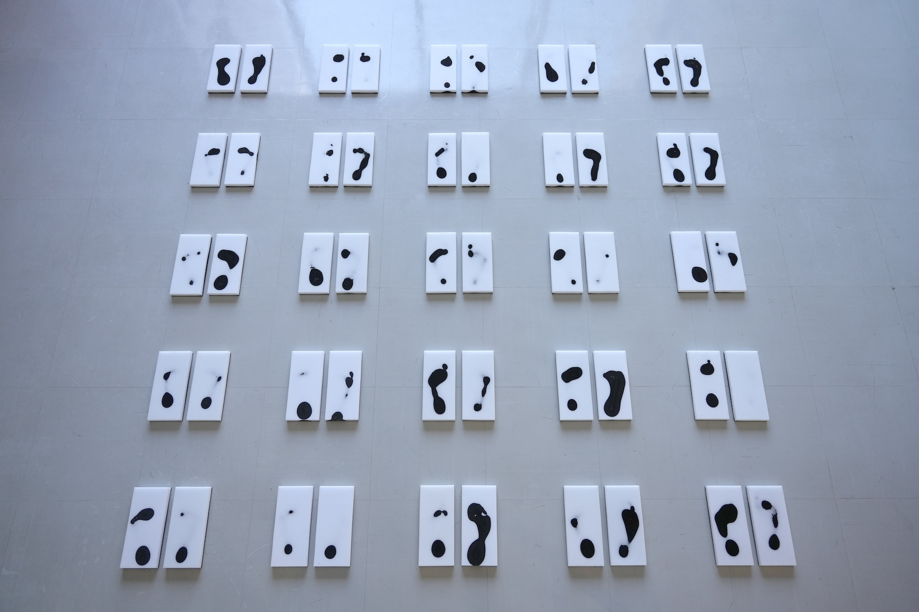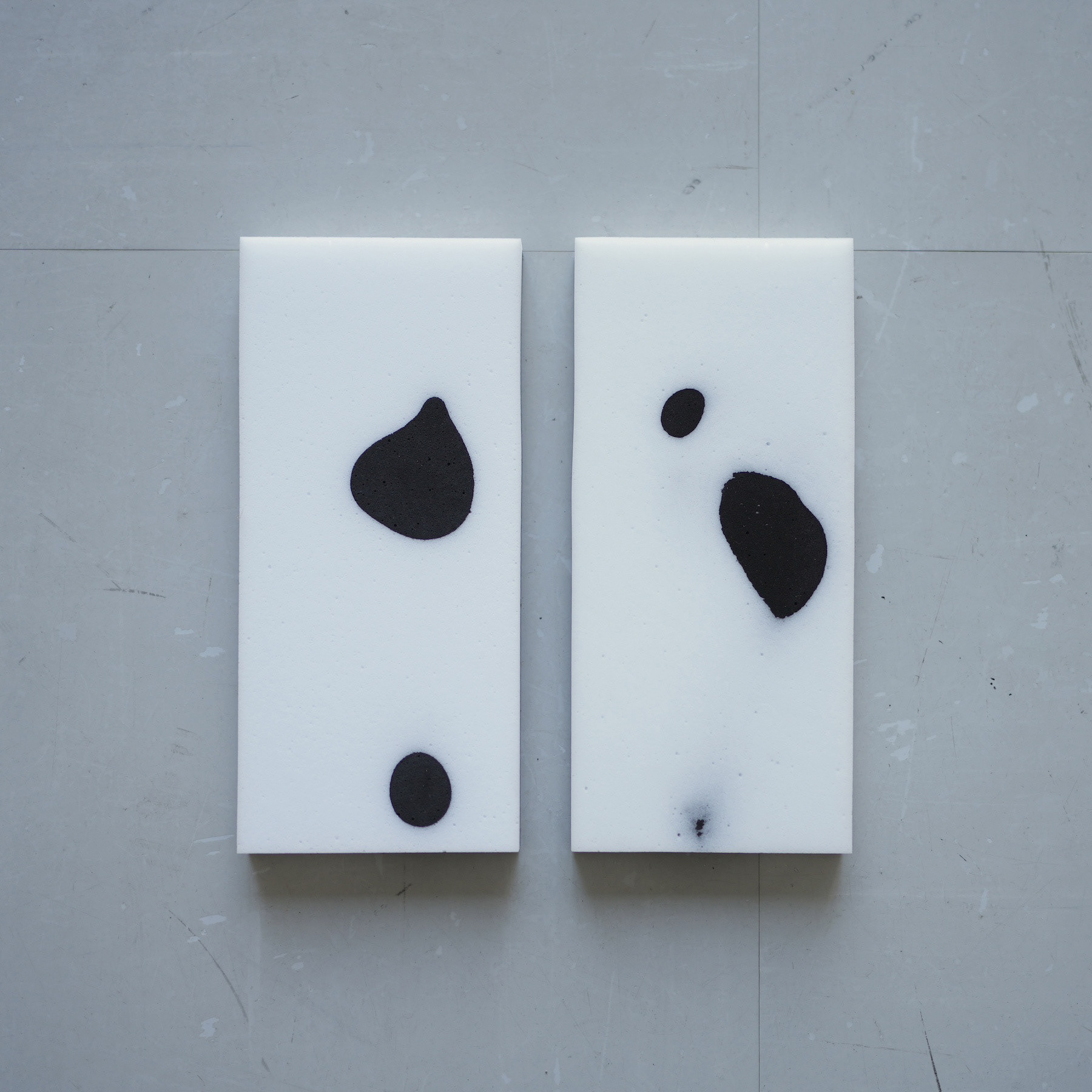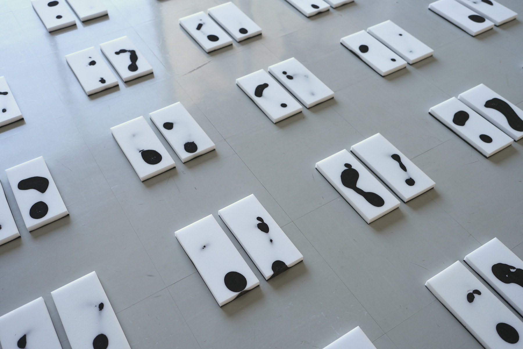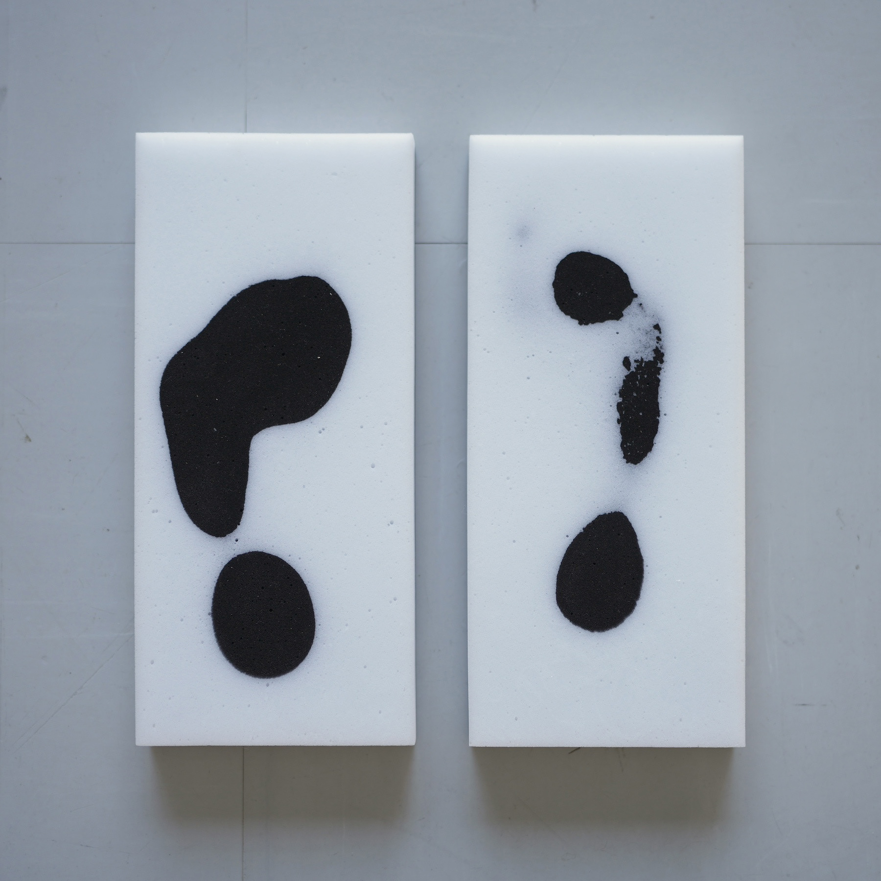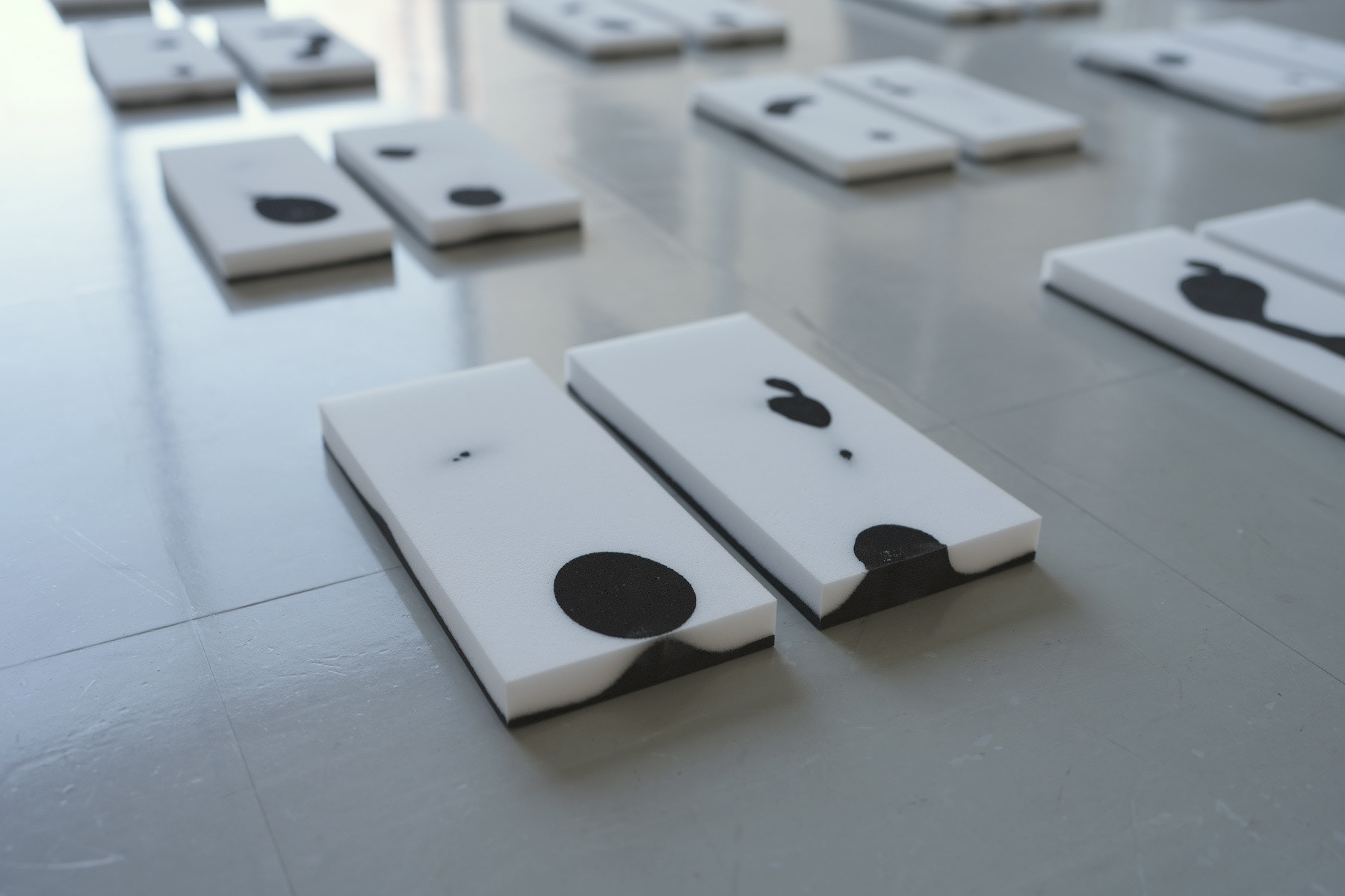 「Step on」メラミンスポンジ、墨汁 25点組作品(各30×30cm程度)